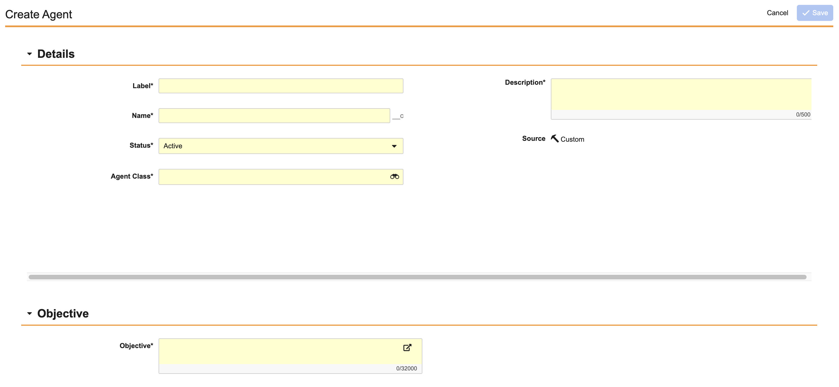 - Agent Objective: A description of the Agent’s roles and responsibilities, similar to a job description.