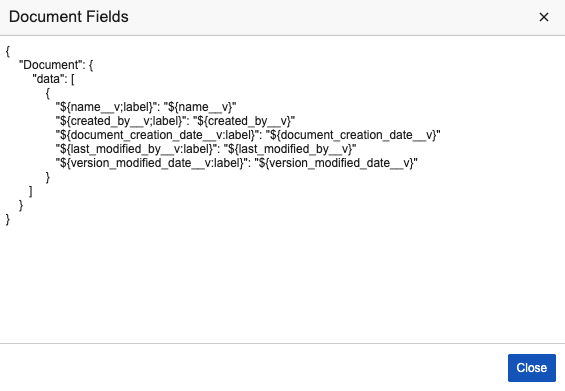 - Add “Document” to the top of the template for Document Agent Context. Add the object name for Object Agent Context. You can include multiple objects, such as related objects and child or parent objects.
