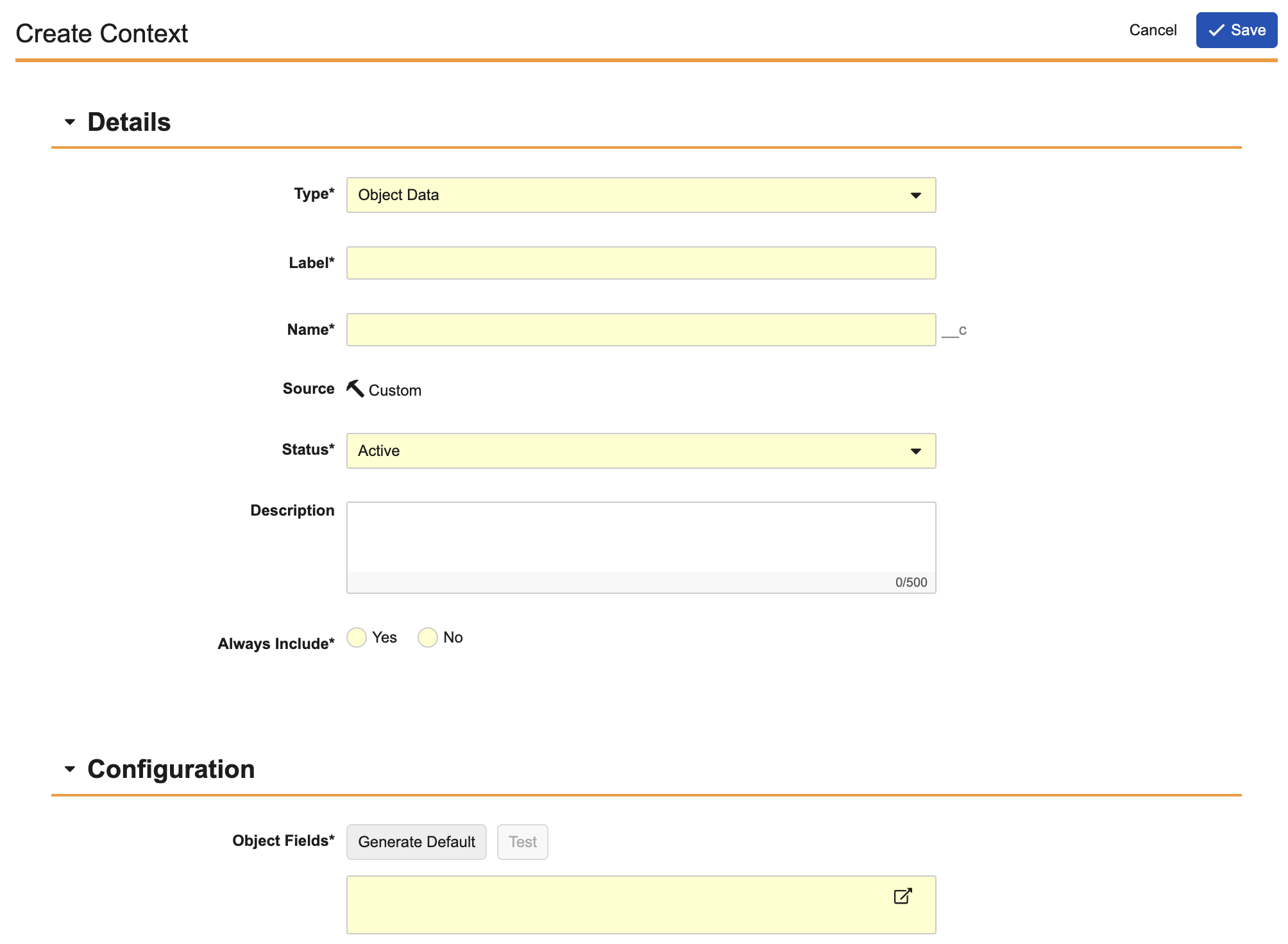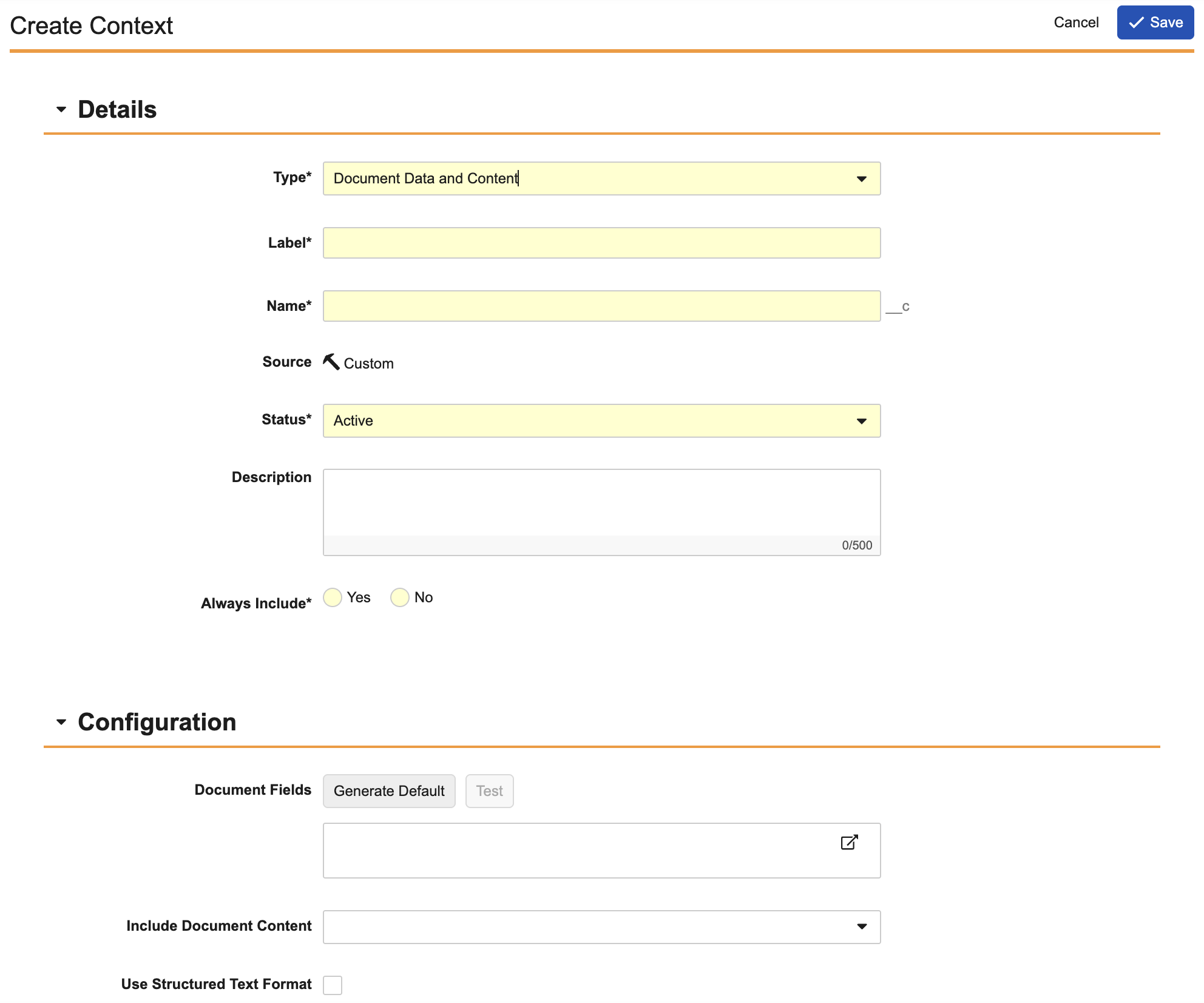 - Select Yes on the Always Include setting to automatically include this agent context with each agent action configured in this agent. Select No to manually include the agent context with each agent action as necessary.