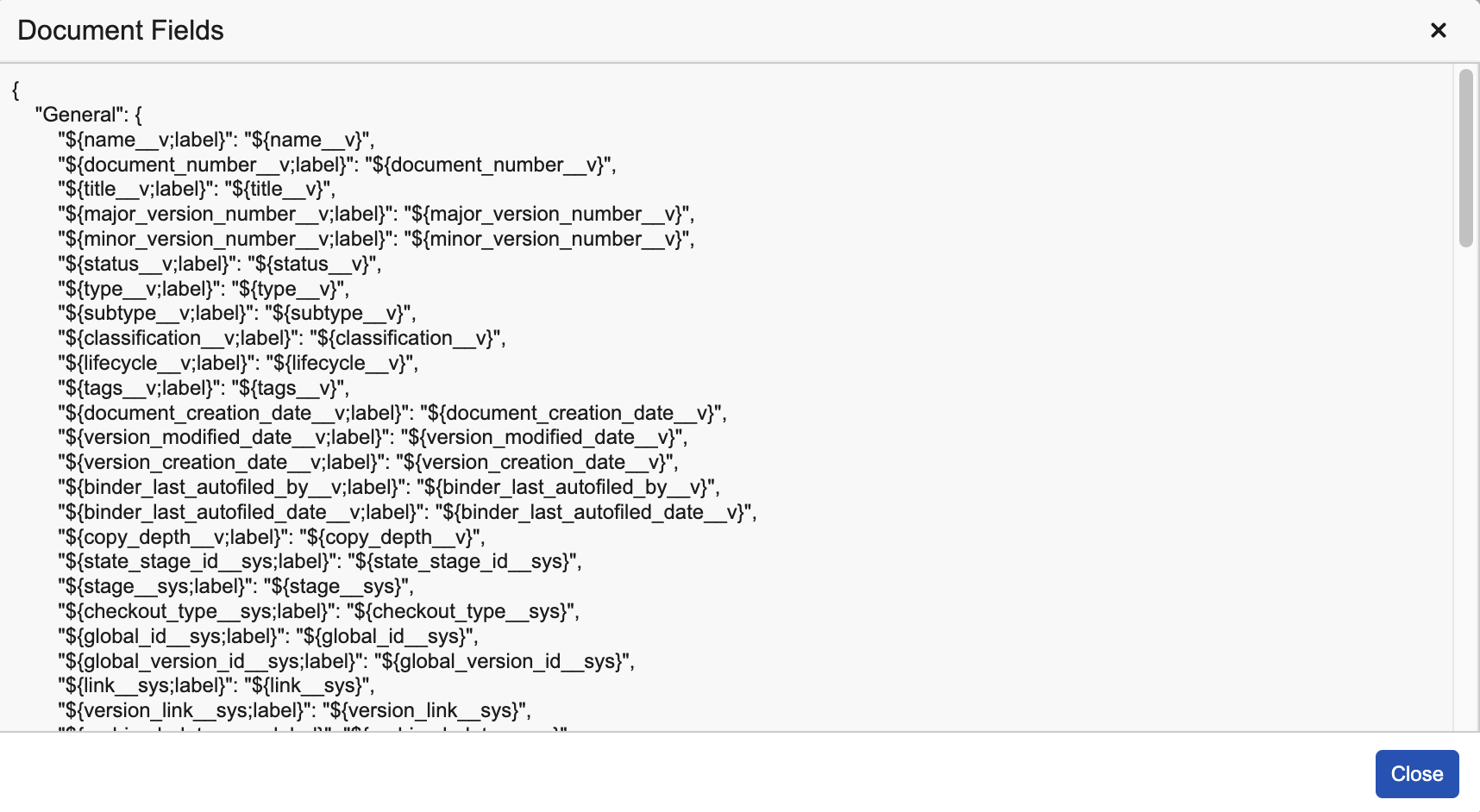 Note: You can reference the following fields in agent objectives, agent actions, and document and object agent context fields using Microsoft Word template syntax: