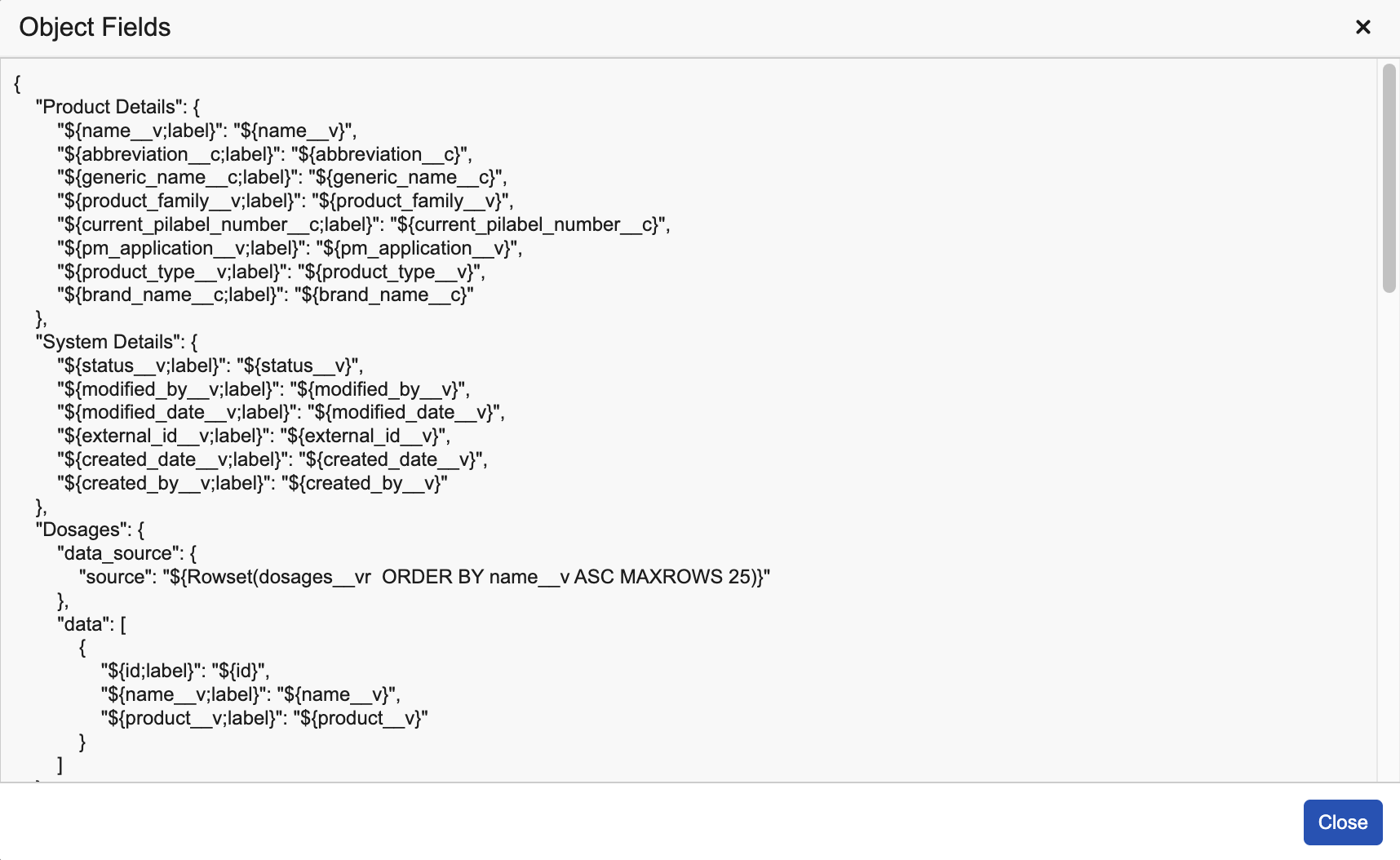 Note: If the MAXROWS clause is used in a ${Rowset()} in the document or object field configuration, it can only return up to 2,000 records. If MAXROWS is not used, up to 25 related object records are returned.
